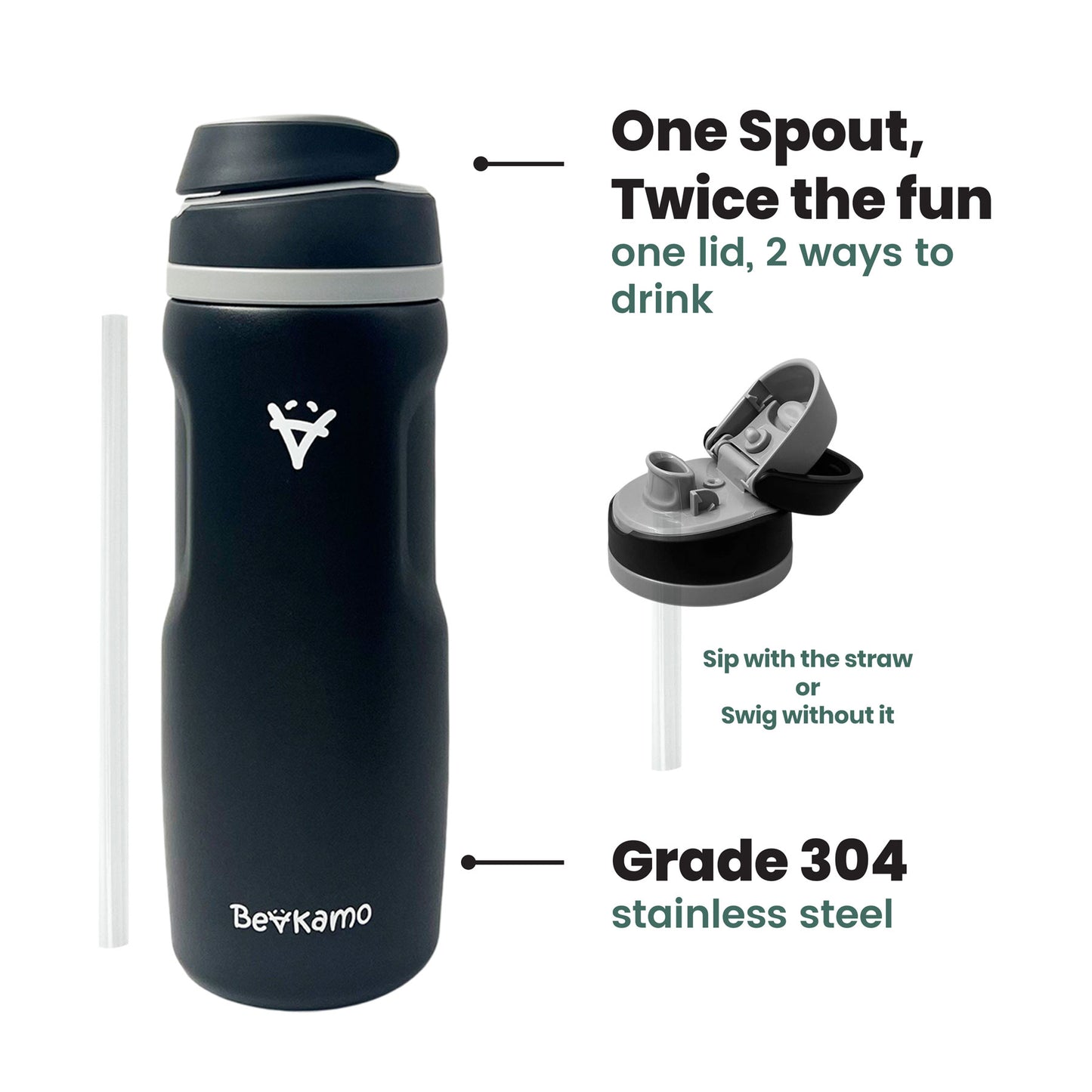 Remove the straw to swig directly from the bottle whenever you prefer.